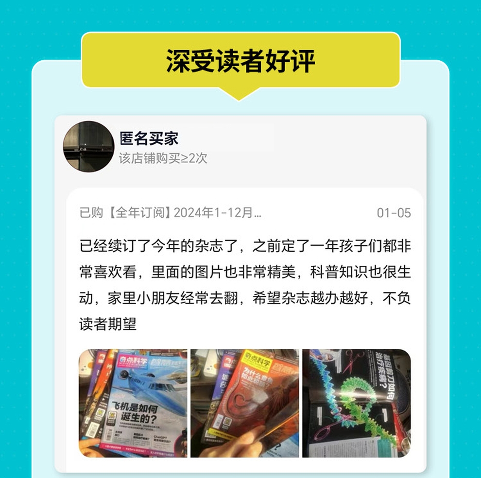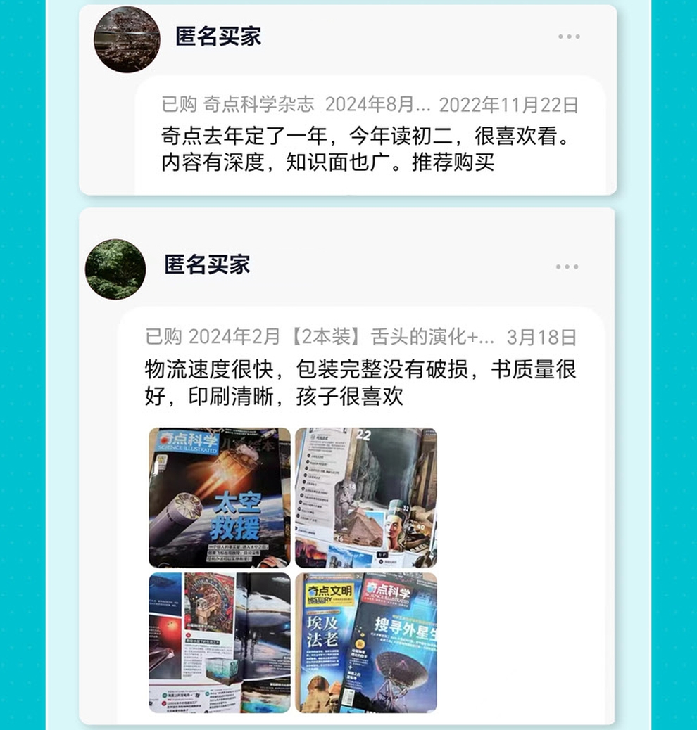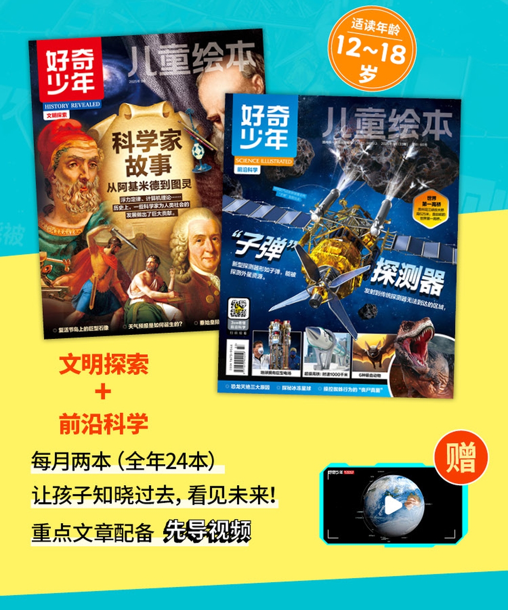 一本科学+一本人文,图文并茂,简单易懂,可以解决孩子的全面阅读需要,也能激发孩子的阅读兴趣。杂志信息:名称:好奇少年(原奇点科学)