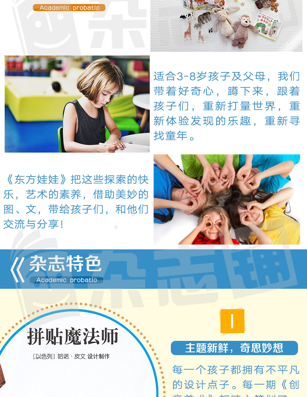 我们带着好奇心,蹲下来,跟着孩子们,重新打量世界,重新体验发现的乐趣,重新寻找童年。编《东方娃娃》的时候,我们就是想把这些探索的快乐,艺术的素养,借助最美的图、文,带给孩子们,和他们交流与分享!