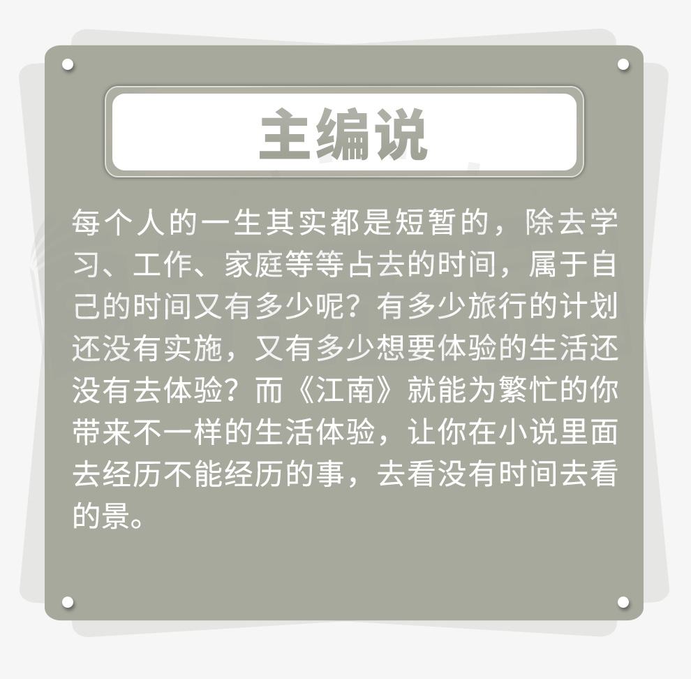 江南》杂志社于1980年成立于杭州,翌年《江南》杂志创刊,以刊发中篇小说为主,浙江省一级文学期刊。