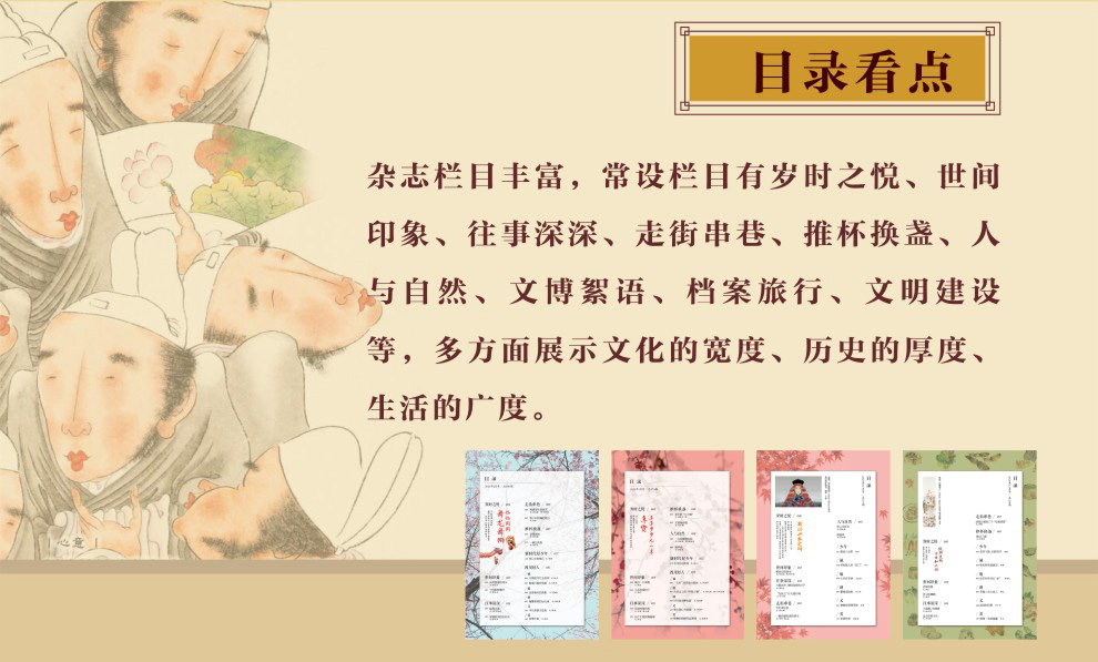 以“解读传统文化,讲述好人故事”为出版宗旨,内容包含传统节气文化的解读、民俗民风的延续、民间工艺的传承、创意新品的推荐、共同的时代记忆等,讲述发生在我们身边的感人故事。风格自然,蕴含生活况味,富有地域特色,并推动融合出版发展,建设集“微博+微信公众号+小程序”为一体的全媒体平台。为两代以上的读者留下深刻记忆,兼具品牌效应和收藏价值。