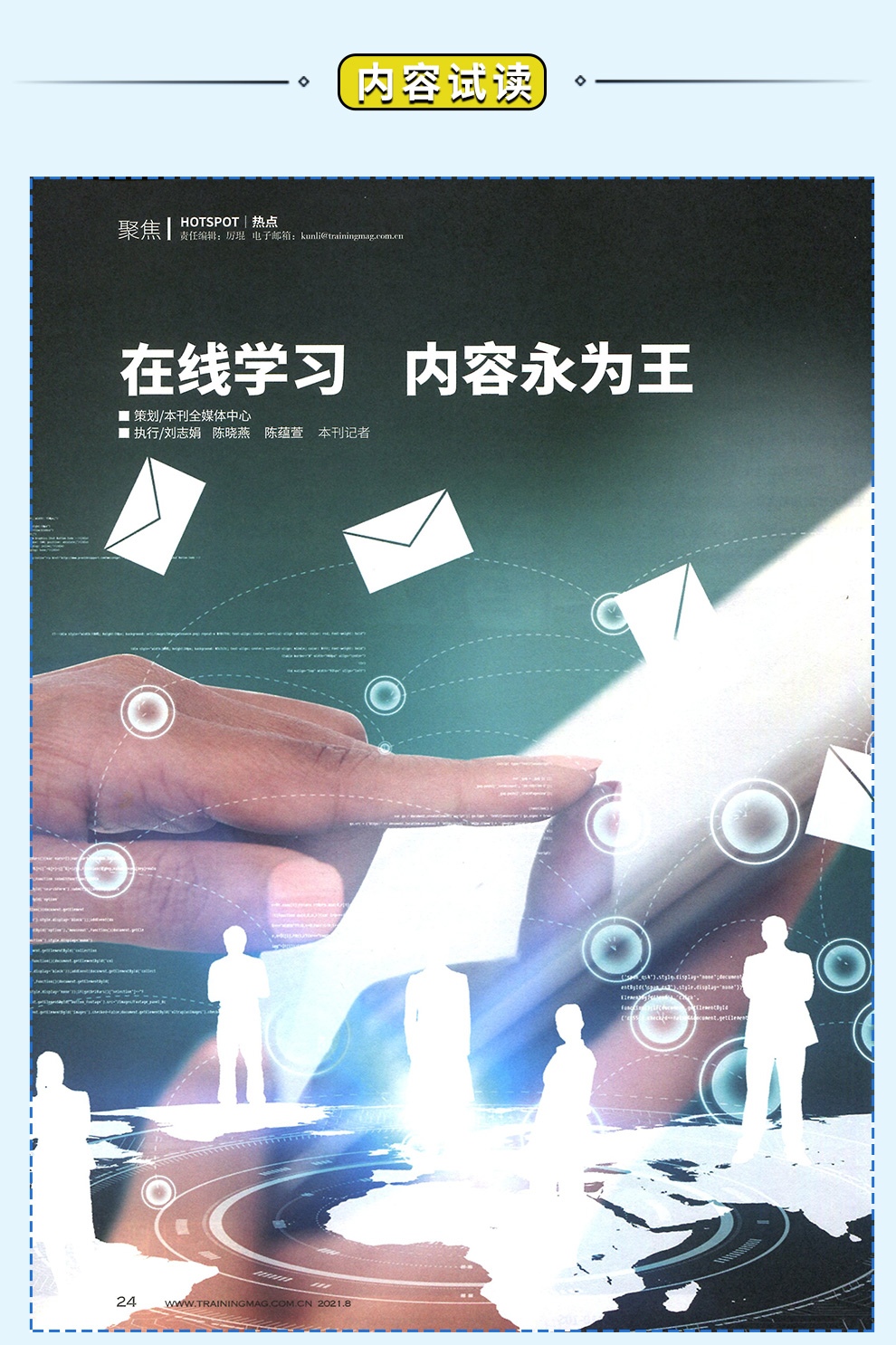 着重于企业培训与人才发展最新案例、实用方法的报道与分析,探求中国企业高素质人才培养与发展的方法和途径,以专业报道和诚信服务的媒体品质赢得读者,为读者提供专业化、全方位的产品与服务。