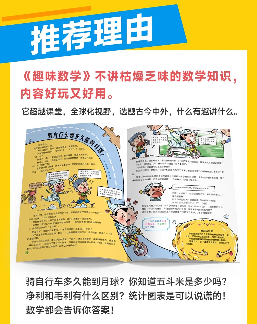杂志有趣生动,内容丰富,包括数学知识、漫画故事、数学名人、趣味课堂等等,分为四大板块,用多个趣味栏目带着孩子一起学习数学,拓展数学思维能力!