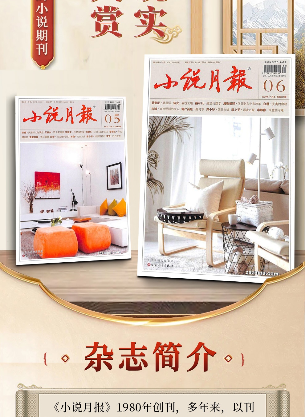 《小说月报》1980年创刊,多年来,以刊载小说为主,所选文章贴近现实,紧扣时代脉搏,集思想性、可读性和艺术性于一体,雅俗共赏,深受读者喜爱。多年来,这里走出过沈从文、朱自清、戴望舒等一众优秀作家,所刊载作品《天下无贼》《金陵十三钗》《秋菊打官司》《激情燃烧的岁月》改编的影片也在国内外引起热烈反响。