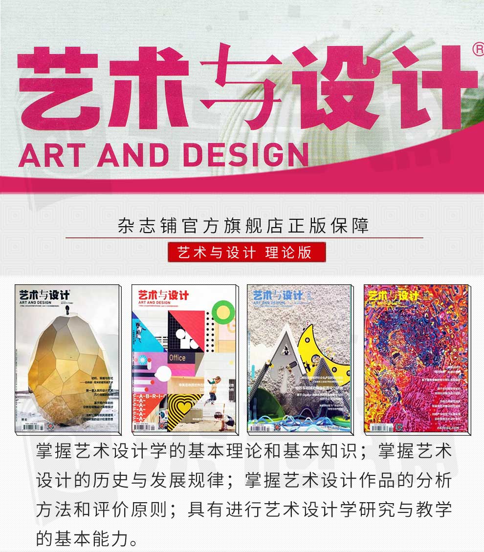 《艺术与设计》杂志是一本先锋和权威的刊物,该杂志总能把握当下的艺术设计热点,以高端的视野为国内外的读者提供一流的资讯,包括时尚前卫的设计观念、沉着、包容的设