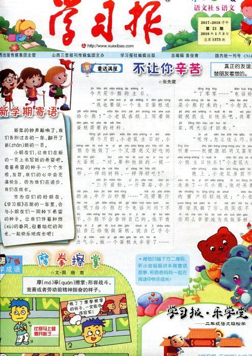 学习报二年级小学S版语文(1年共40期)(杂志订阅)